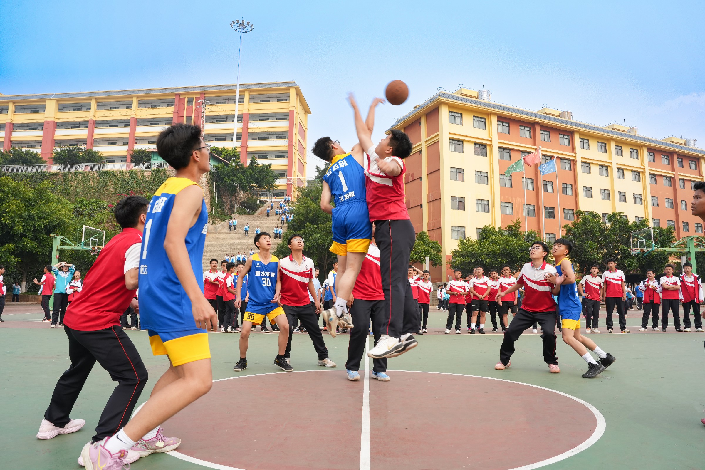 春季开学伊始,建水闻道高级中学紧扣“健康第一”育人理念,锚定“人人能参赛,周周有挑战,月月有联赛,学期有盛会”的校园体育赛事目标,全面启动本届建实“班级篮球超级联赛”。