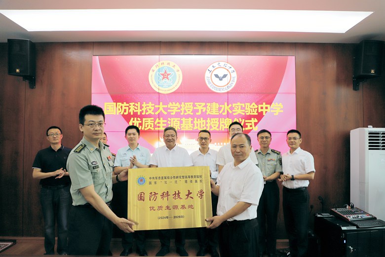 6月17日上午,国防科技大学前沿交叉学科学院教学科研处大校处长张成栋一行在建水实验中学举行优质生源地授牌仪式。红河州教育体育局党组书记、局长张学理,建水县人民武装部部长张伟,建水县教育体育局党组书记、局长王滔参加。“建水实验中学2021年以来有12名学生考取国防科技大学,这些学生进入大学后表现特别突出,例如2021届建实毕业生刘建界,在国防科大连续三年专业排名第一,获国际级竞赛一项、省级竞赛三项、
