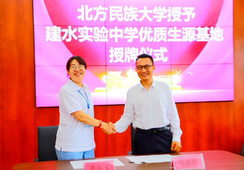 6月25日下午,北方民族大学经济学院副院长、金融学专家关春玉教授在建水实验中学签署优质生源基地合作协议并授牌。关春玉教授介绍,北方民族大学直属于国家民族事务委员会,坐落在银川市,是我国唯一一所建立在民族地区的中央部委高校。云南省作为少数民族大省,北方民族大学2024年计划在云南招收本(预)科学生369人,涵盖21个学院42个专业。建水实验中学近几年的毕业生在北方民族大学成绩优异,表现突出,中学阶段