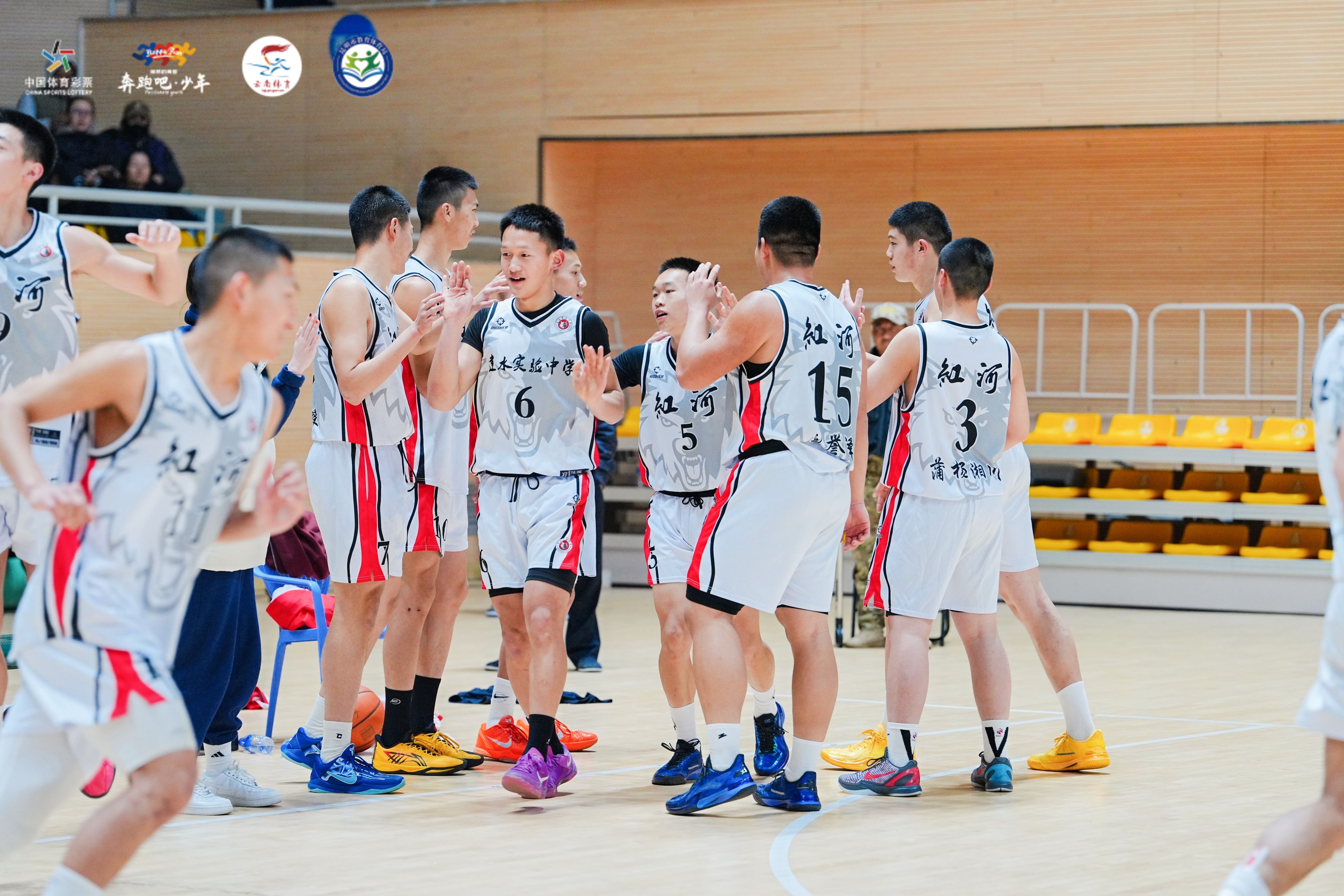 比赛过程中,建水实验中学男篮稳扎稳打,在多轮强强对话中不断突破自我。决赛赛场,双方比分始终胶着,攻防转换迅速。关键时刻,队员们沉着应对、默契配合,以顽强意志守住胜局,完成七战全胜的精彩征程。