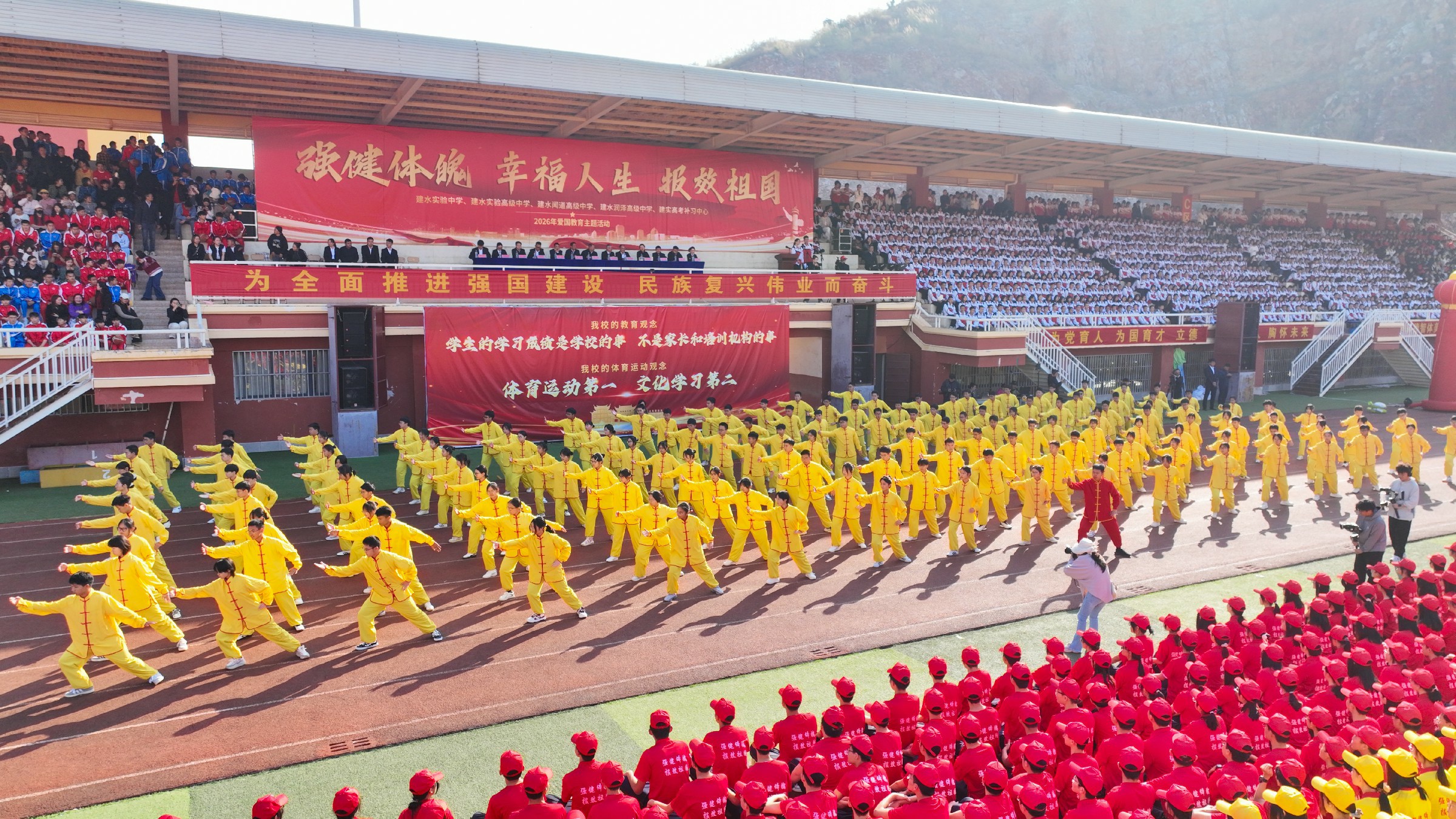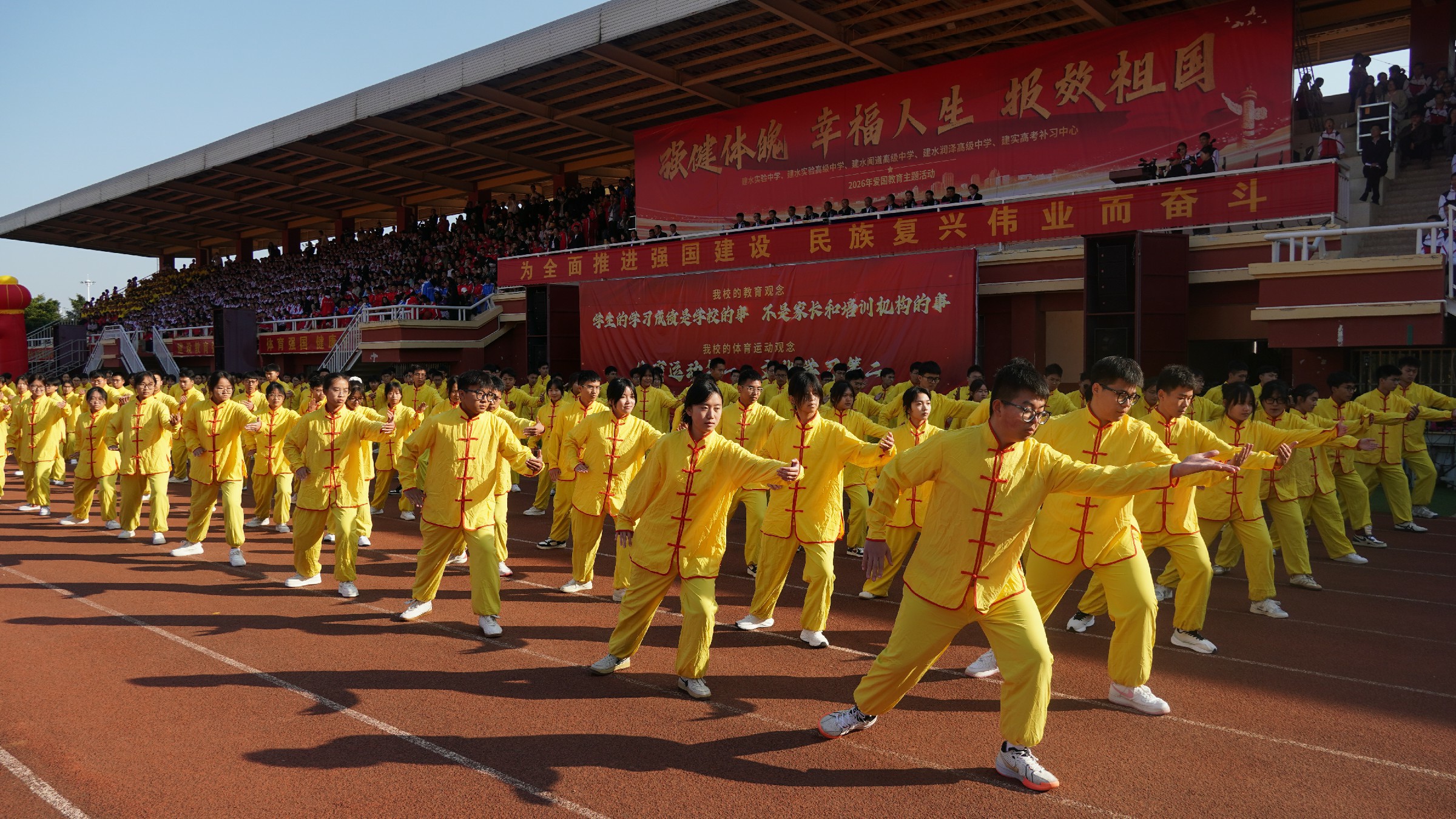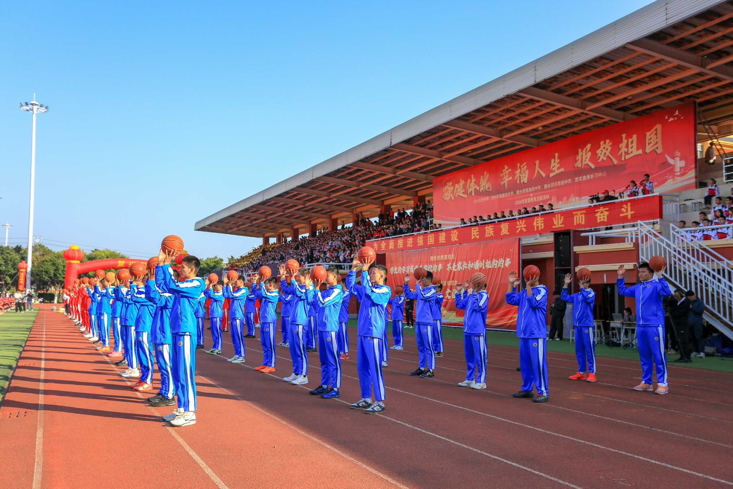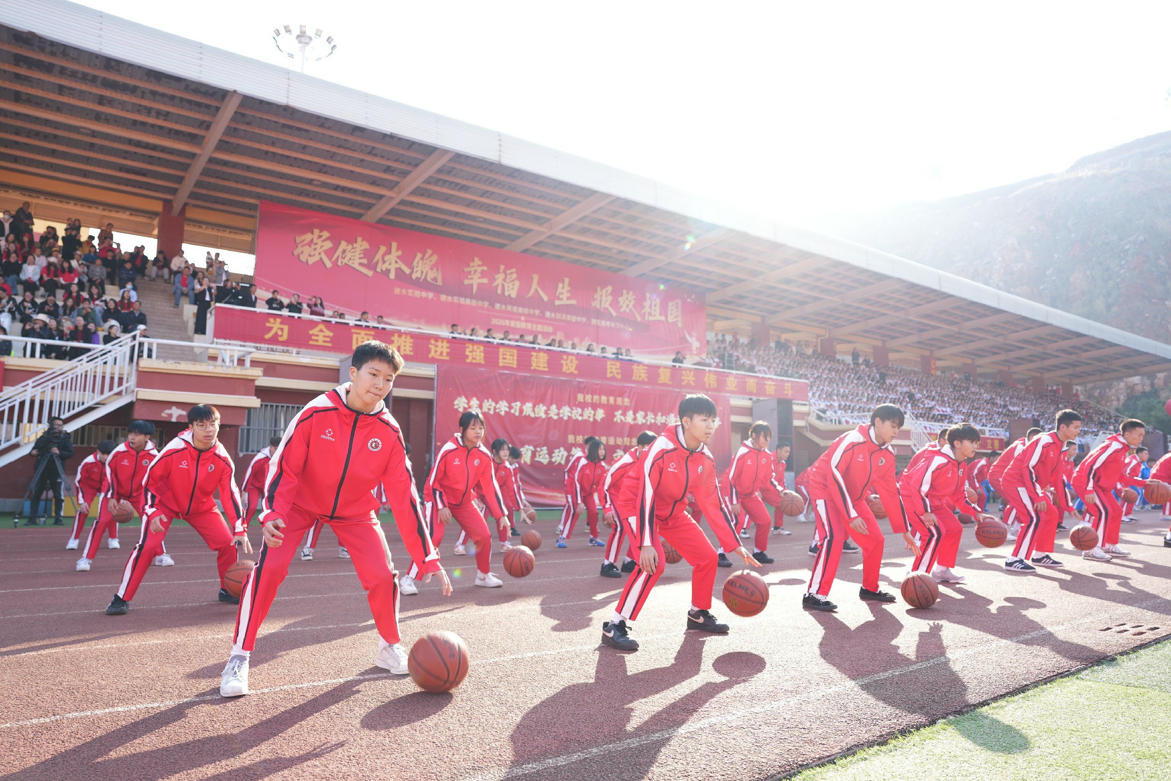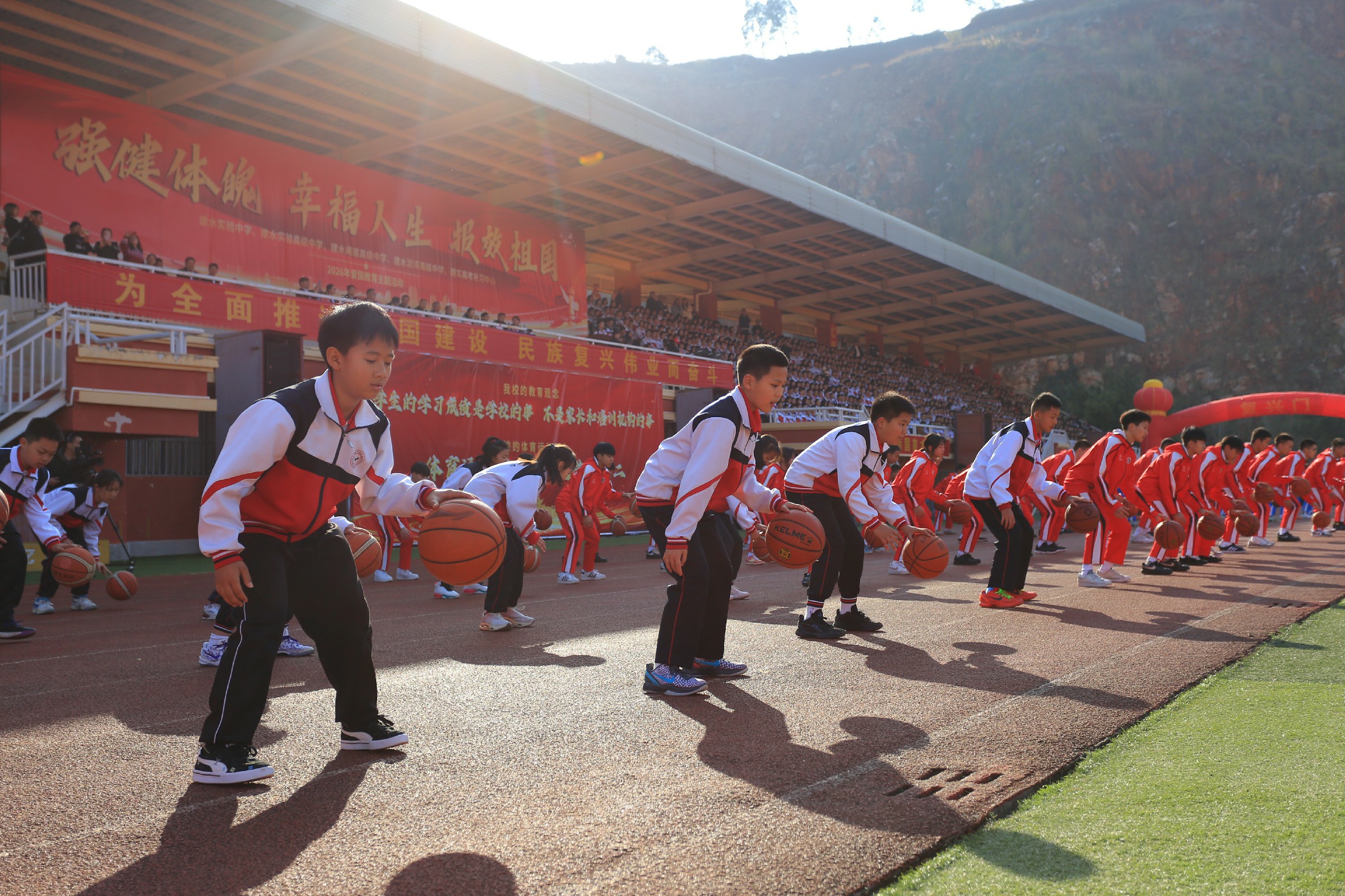 活动在庄严的国歌声中拉开帷幕,篮球方队、健身操方队、太极拳方队依次亮相。从屡夺省级篮球赛事桂冠、多名师生入选国家篮球集训队的篮球健儿奋勇争先的身姿,到健身操迸发的青春活力,再到太极拳承载的中华优秀传统文化底蕴,每一个身影都彰显着建实学子“野蛮其体魄”的自觉,每一次跃动都诠释着“文明其精神”的追求。