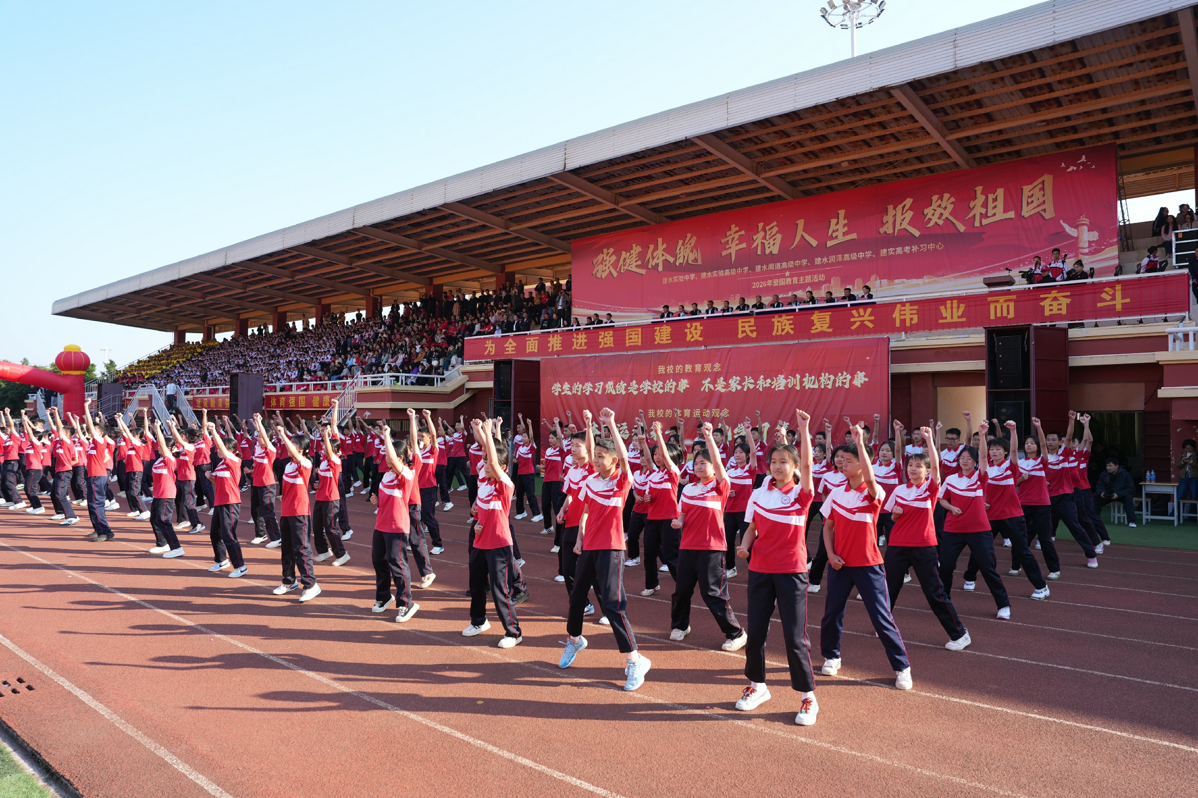 体育强则中国强,国运兴则体育兴。此次活动是学校深化爱国主义教育、落实体育强国与教育强国战略的生动实践,让“强健体魄、幸福人生、报效祖国”的信念深植学子心中。新时代新征程,愿建实学子始终以昂扬向上的龙马精神,以强健之躯、赤诚之心、过硬本领,在强国建设、民族复兴的伟大征程中,书写不负时代、不负祖国的青春华章。